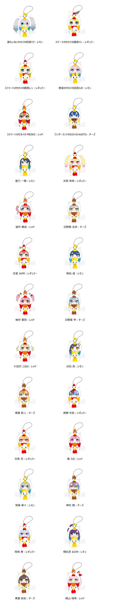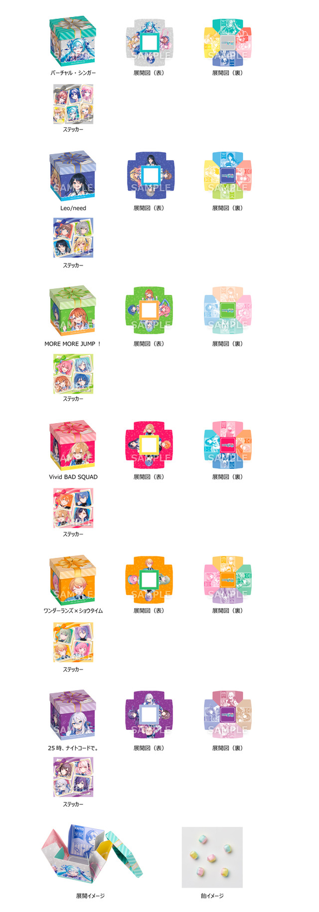 初音ミク、鏡音リン、鏡音レン、巡音ルカ、MEIKO、KAITOによる「バーチャル・シンガー」、星乃一歌、天馬咲希たちの「Leo/need」、花里みのり、桐谷遥たちの「MORE MORE JUMP!」、小豆沢こはね、白石杏たちの「Vivid BAD SQUAD」、天馬司、鳳えむたちの「ワンダーランズ×ショウタイム」、宵崎奏、朝比奈まふゆたちの「25時、ナイトコートで。」と多くのキャラクターが登場し、2022年にはミニアニメ『ぷちセカ』全10話も放送された。