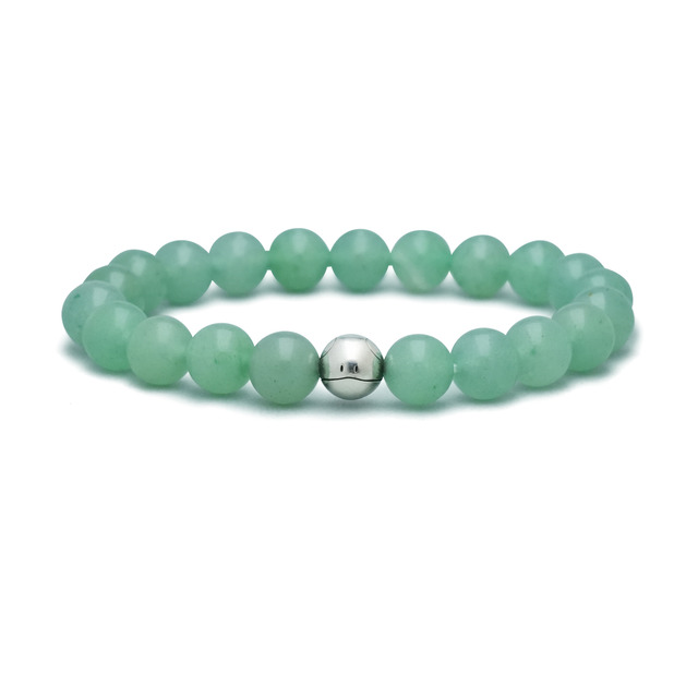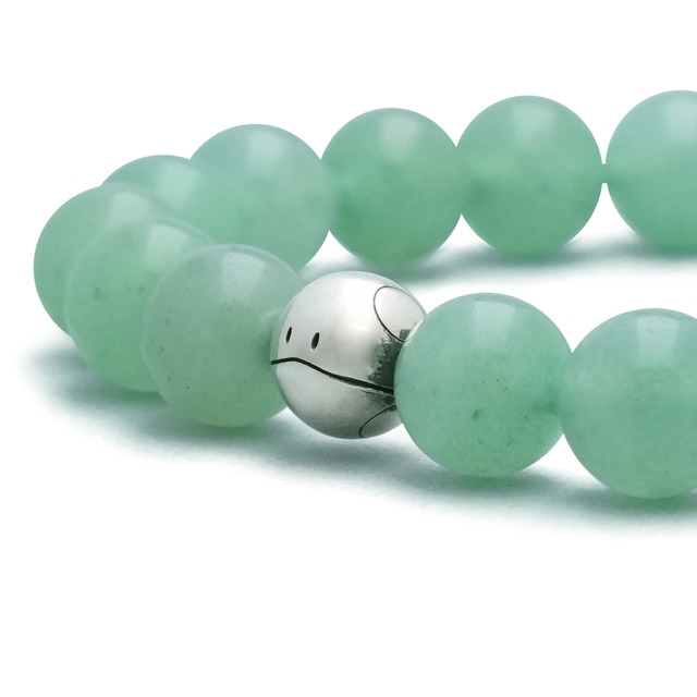 ブレスレットでは、ハロの丸いフォルムを半貴石アベンチュリンのビーズと合わせて表現。天然石ならではのやさしいグリーンの輝きが、ハロの持つ温かみを感じさせる。