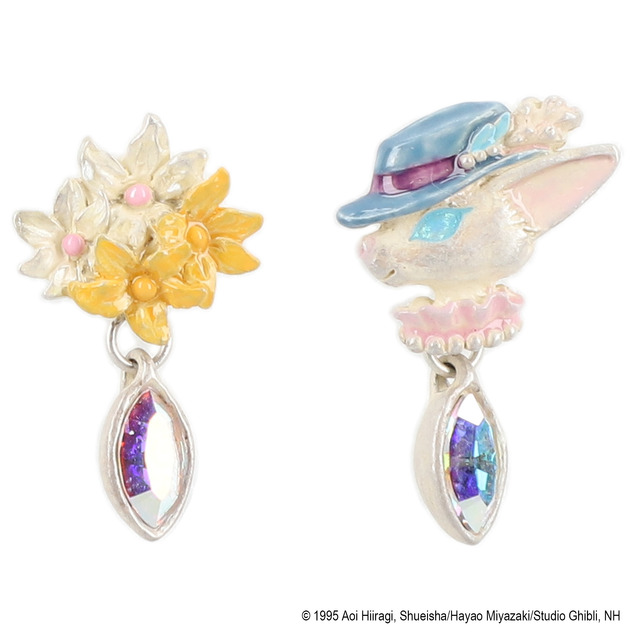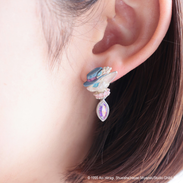 「Donguri Closet 耳をすませば ピアス 再会 ルイーゼ」には、シルバーを基調にオーロラのようなカラーのラインストーンがあしらわれ、それぞれのイメージに合わせた花のピアスが付く。
