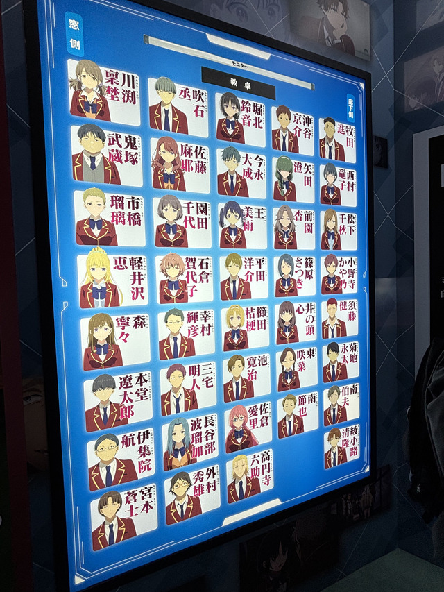 『ようこそ実力至上主義の教室へ』エリアでは、Dクラスの席順が掲示され、来場者が思わず足を止める仕掛けに。1年生編とは違い、1クラス40人体制に変更されている点が再確認でき、「新メンバーがどんな人物なのか」「アニメでどう描かれるのか」など、今後の展開がますます気になる展示となっていた。