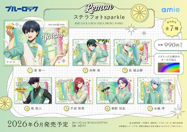 潔世一、糸師凛、凪誠士郎、烏旅人、千切豹馬、御影玲王、氷織羊たちが、「amie」よりLEMONをテーマにしたさわやかな装いで登場だ。
