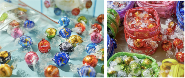 定番フレーバー「ミルク」や季節限定フレーバー「さくら&クリーム」、「ラズベリー&チーズケーキ」、「ナポリタン」など、さまざまなチョコレートをたくさん詰められるイベント。カラフルなリンドールが描かれたレッドとブルーのポップな専用バッグは、上のジップが閉まるまで詰めることができる。