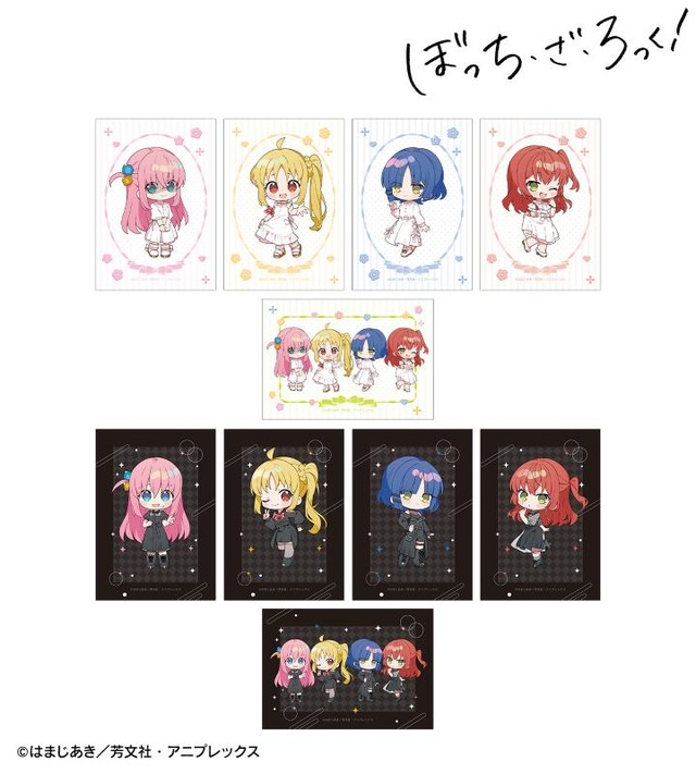 このたび、 後藤ひとり、伊地知虹夏、山田リョウ、喜多郁代がデフォルメされ、白と黒のワンピースを着用したイラストがデザインされたアイテムが続々登場。