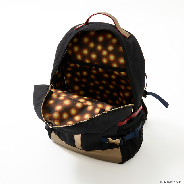アーチャーの甲冑姿を日常でも使いやすい配色で再現した「バックパック」は、前面に甲冑の中央に施された模様をさり気なく配置することでアーチャーの戦う様を想起させる。