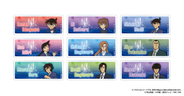 江戸川コナン/灰原哀/工藤新一/毛利蘭/萩原千速/横溝重悟/世良真純/萩原研二/松田陣平(全9種)で展開