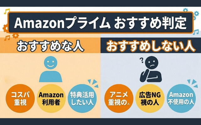 Amazonプライムはコスパ重視やAmazonユーザーには最適ですが、作品数重視やアニメ特化を求める方にはおすすめしません。