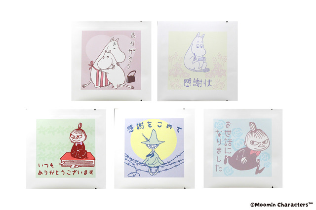 ムーミンたちのイラストとともにメッセージを添えた、個包装タイプのメッセージティーも。「ありがとう」や「お世話になりました」など、日常で使いやすい言葉を揃えた全10種類のデザインで、選ぶ楽しさも魅力のアイテムだ。