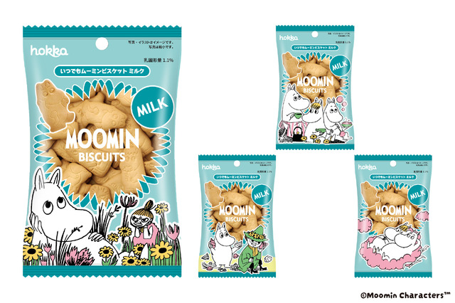 「いつでもムーミンビスケット(ミルク/ココア)」は、サクッと軽やかな食感が特長のビスケット。ムーミンのキャラクターたちをかたどった全11種類の形があり、パッケージデザインもそれぞれ4種類。60分の1の確率で出会える“ご先祖さま”の形が入っていれば、より嬉しくなること間違いなしだ。