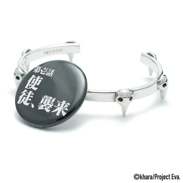 「バッジ脱着アクセサリー」は第3使徒サキエルをモチーフにしたデザインで、特徴的な“目”の空洞にバッジを通すことが可能。衣服やバッグに付けることが多いバッジを、リングやピアス、ネックレス、ブレスレットなどのアクセサリーに装着できる仕様になっている。(意匠登録第1801589号)