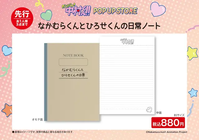 なお、グッズラインナップには「【会場限定】カプセルトイ ミニ缶バッジ」をはじめ、アクリルスタンドやミニブロマイドといった定番グッズから、「なかむらくんとひろせくんの日常ノート」や「広瀬のハンカチ」といった本作の世界観を感じられるグッズも並ぶ。