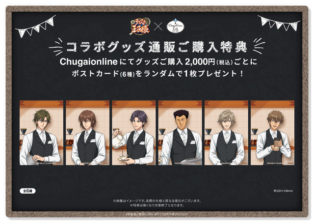 また、カフェ制服姿の描き下ろしイラストを使用した「アクリルフィギュアスタンド」や「予約席風デスクプレート」のほか、通販商品の「BIGアクリルスタンド」など、オリジナルグッズも多数販売。