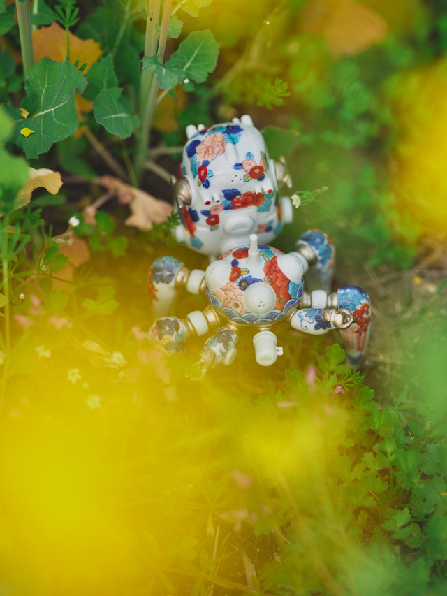 「タチコマ鍋島焼」は、佐賀県を代表する2つの窯元(畑萬陶苑、224porcelain)による極めて精緻な手仕事によって誕生した。江戸時代に鍋島藩の御用窯として将軍家への献上品を担い、350年の歴史と伝統美を受け継ぐ鍋島焼の名窯「畑萬陶苑」。そして、肥前吉田の地で現代の感性と革新を追求し、新しい磁器の表現を切り拓く「224porcelain」。佐賀を代表する二つの窯元が初めて共創した、伝統と革新が響き合う磁器クラフト。日本を代表する焼き物の産地としての歴史・文化、美しい風景や自然の素材・色彩を、今に受け継がれる技によってタチコマに宿す。