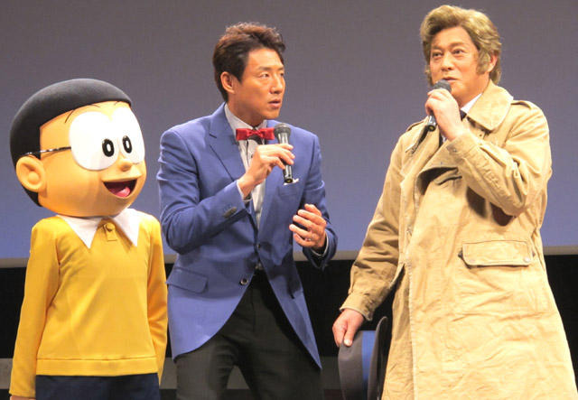 『映画ドラえもん のび太のひみつ道具博物館(ミュージアム)』完成披露試写会(左から、のび他太&松岡修造&松平健)