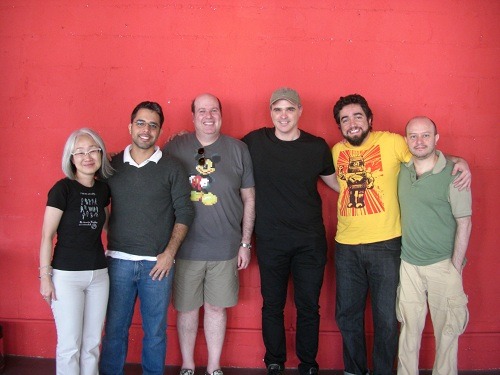 (インタビューした監督たち) 左から筆者、ディオゴ・ヴィエガス氏、2D Labのアンドレス・リエバン氏とアンドレ・ブリーチマン氏、Copa Studioのゼ・ブランダォン氏、Marao Filmesのマルセロ・マラオン氏