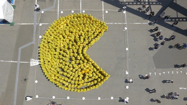 ドローンにて撮影成功!世界最多人数で作られたパックマンを上空から捉えた姿 4枚目の写真・画像