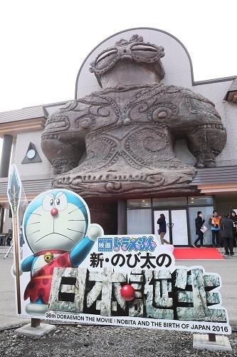 ドラえもんが青森・木造駅の一日駅長就任 土偶のかたちの駅にびっくり 6枚目の写真・画像