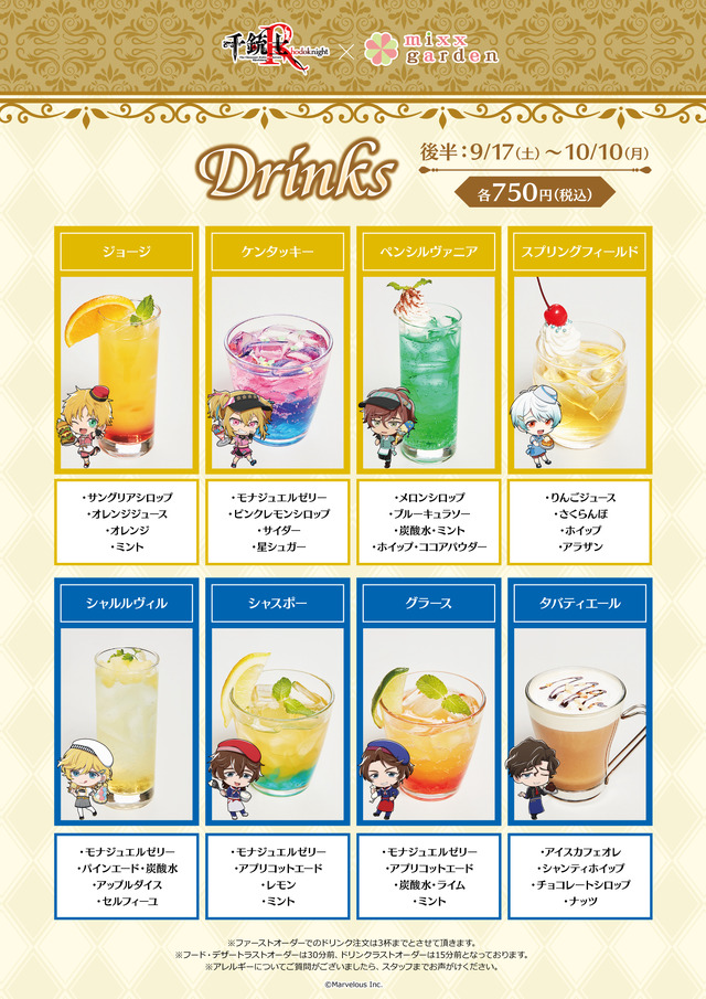 【千銃士R】コラボカフェ 後半提供メニュー一覧 (C)Marvelous Inc.