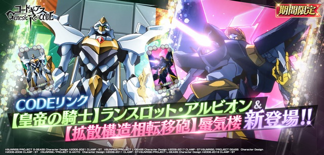『コードギアス Genesic Re;CODE』イメージ(C)SUNRISE/PROJECT GEASS Character Design(C)2006-2008 CLAMP・ST(C)SUNRISE/PROJECT G-AKITO Character Design(C)2006-2011 CLAMP・ST(C)SUNRISE/PROJECT L-GEASS Character Design(C)2006-2017 CLAMP・ST(C)SUNRISE/PROJECT L-GEASS Character Design(C)2006-2018 CLAMP・ST(C)SUNRISE/PROJECT Z-GEASS Character Design(C)2006-2021 CLAMP・ST(C)SUNRISE/PROJECT G-GEASS Character Design(C)2006-2021 CLAMP・ST