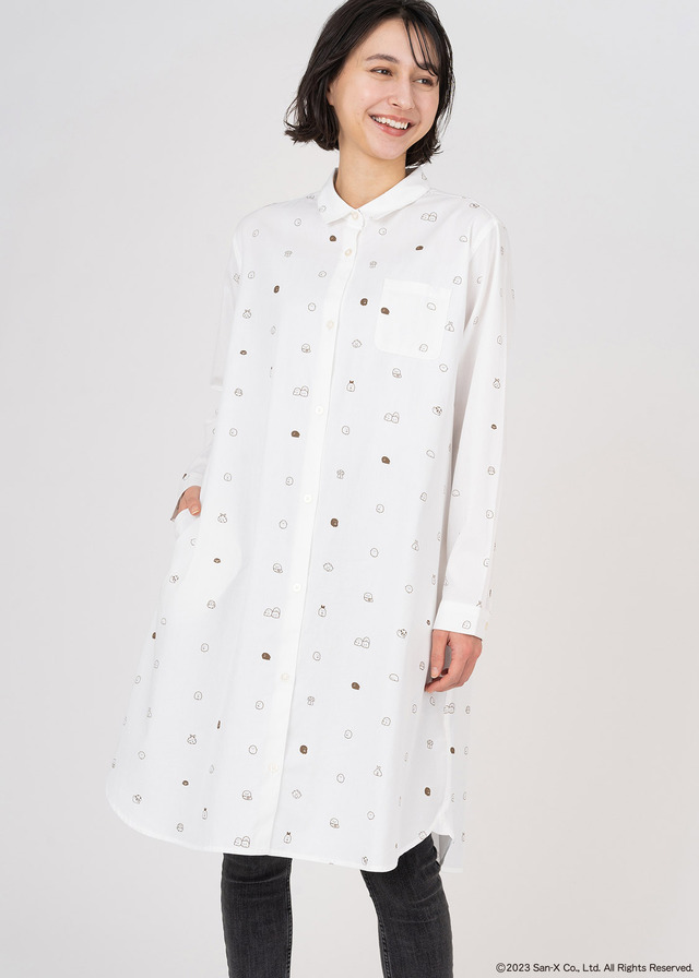 『すみっコぐらし』×「グラニフ」コラボレーション第3弾シャツワンピース「みにっコ パターン」(C)2023 San-X Co., Ltd. All Rights Reserved.