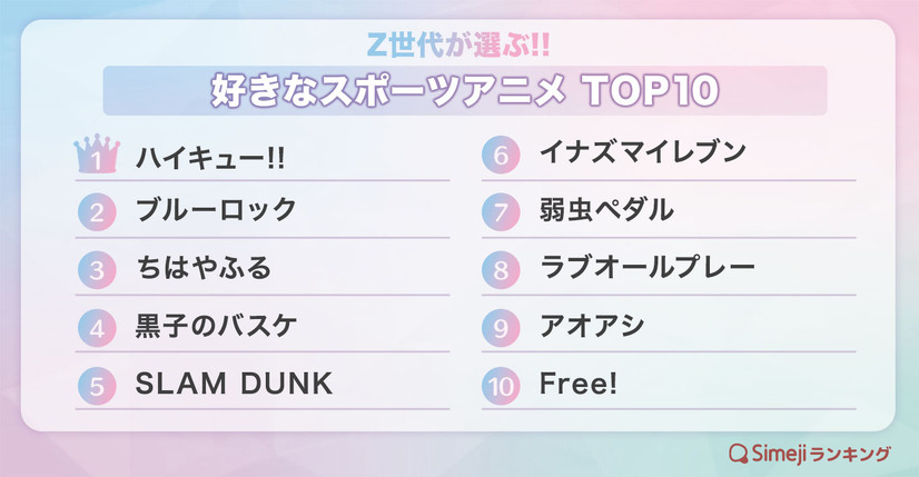 「スラムダンク」「ブルーロック」抑えた1位は!? Z世代が好きな“スポーツアニメ”TOP10【Simejiランキング】 11枚目の写真・画像