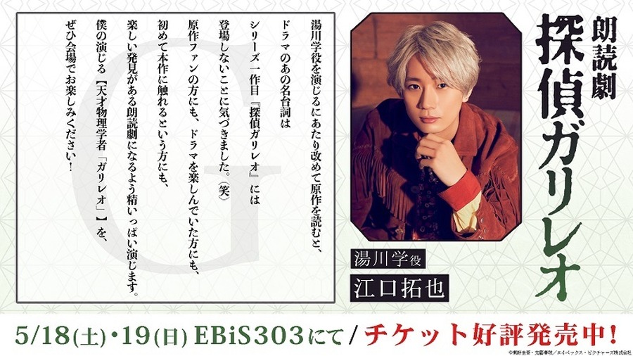 朗読劇『探偵ガリレオ』湯川 学 役 神尾晋一郎コメント(C)東野圭吾・文藝春秋/エイベックス・ピクチャーズ株式会社