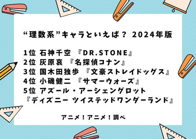 [“理数系”キャラといえば? 2024年版]ランキング1位~5位