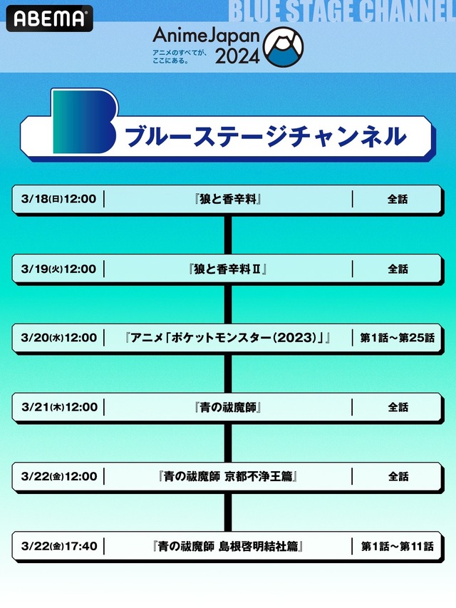 「AnimeJapan 2024」参加タイトル関連作全26作品 無料一挙放送〈BLUE STAGEチャンネル〉