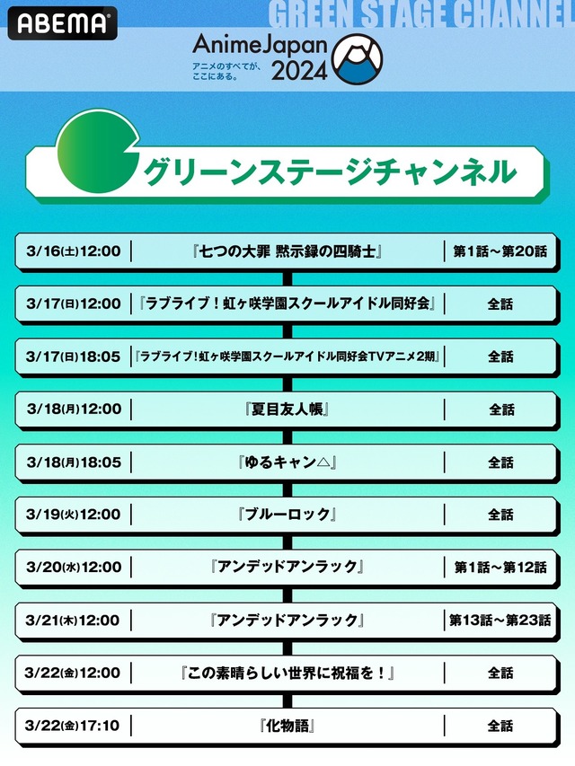 「AnimeJapan 2024」参加タイトル関連作全26作品 無料一挙放送〈GREEN STAGEチャンネル〉