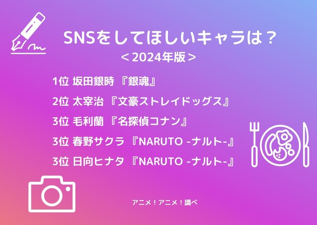 [SNSをしてほしいキャラは? 2024年版]ランキング1位~5位
