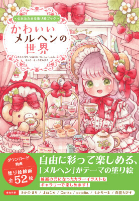 ほんわかとした動物たちや小物、かわいい洋服に身を包んだ女の子、見ているだけで心がほっとするような、ぬくもりあふれる空間を描いた線画を約50点収録しています。