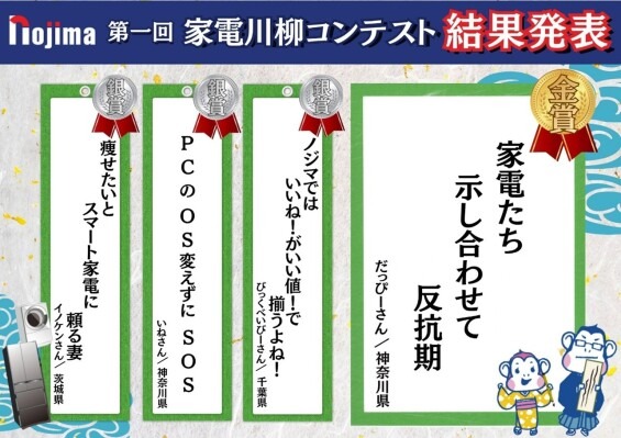 テーマ:「ノジマ」もしくは家電にまつわる日常を川柳に