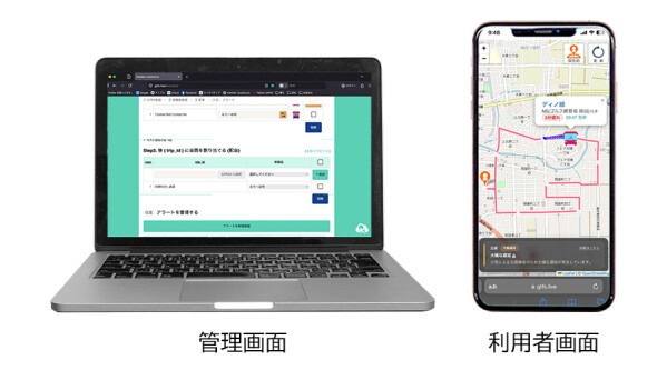 「いちごロケLITE」は、管理画面と利用者向け画面の2つの画面で構成されています。管理画面では、GTFSデータや車載器の登録、便への車両割り当て(配車)、運行アラートの設定など、運行に必要な各種設定・管理を行えます。一方、利用者向け画面はWebブラウザからアクセスでき、車両の現在位置や運行状況、アラート情報を地図上で確認できます。