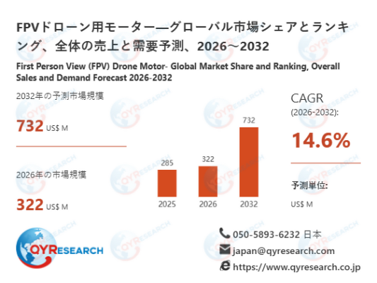 QY Research株式会社(東京都中央区)は、「FPVドローン用モーター―グローバル市場シェアとランキング、全体の売上と需要予測、2026~2032」の最新レポートを発表しました。