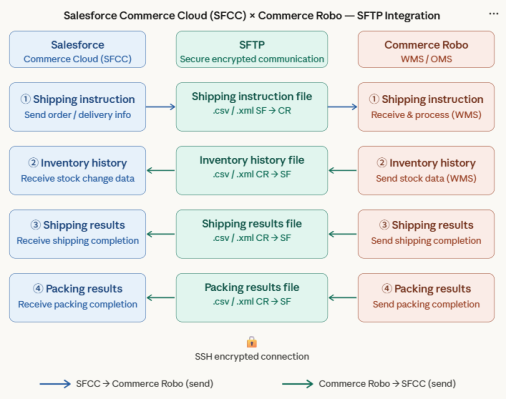 Commerce Robotics Inc. (Head Office: Minato-ku, Tokyo; CEO: Akihiro Ito), the provider of “Commerce Robo,” an integrated OMS/WMS system processing 60 million transactions annually, today announced the successful customization, delivery, and launch of data integration with Salesforce Commerce Cloud (SFCC) for global e-commerce enterprises, with full-scale operations commencing on April 1.