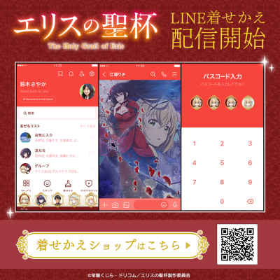 美しくも謎めいた『エリスの聖杯』の世界観をイメージしたLINE着せかえが、株式会社インクルーズの販売アカウントより配信開始いたしました。気品あふれるデザインと幻想的なビジュアルで、作品のダークで美しい世界観を表現したデザインとなっております。トーク画面やメニュー画面など、LINEを開くたびに物語の空気感をお楽しみいただけます。
