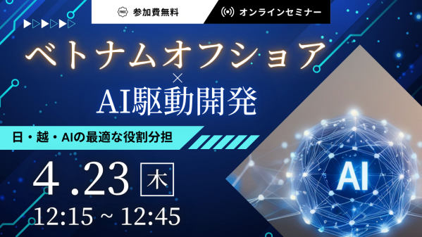 株式会社アイディーエス(本社:東京都港区、代表取締役:中野 貴志、以下アイディーエス)は、2026年4月23日(木)に、オフショア開発における日・越・AIの三者分業モデルについてのオンラインセミナー「ベトナムオフショア×AI駆動開発|日・越・AIの最適な役割分担」を開催いたします。