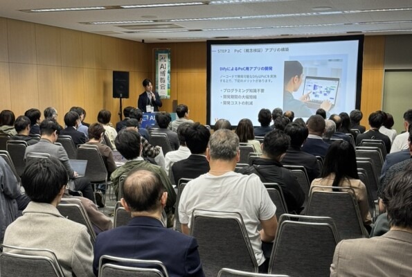 講演では、Difyを使い、現場主導で進める業務AI自動化の実践ステップを解説いたしました。終了後にはブースにて具体的な導入相談をいただくなど、内製でAIエージェントを構築する動きへの関心の高さが伺えました。