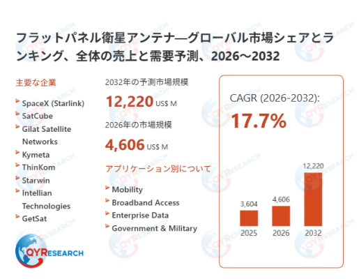 本記事は、QY Research発行のレポート「フラットパネル衛星アンテナ―グローバル市場シェアとランキング、全体の売上と需要予測、2026~2032」に基づき、市場動向および競合分析の概要を解説します。