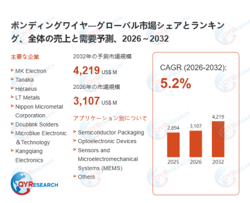 本記事は、QY Research発行のレポート「ボンディングワイヤ―グローバル市場シェアとランキング、全体の売上と需要予測、2026~2032」に基づき、市場動向および競合分析の概要を解説します。