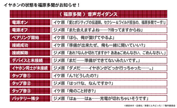 音声ガイダンスは「福原多聞(CV:波多野 翔)」の録り下ろしボイスを搭載。電源オンやオフ、ペアリング時やタップ音等、全11ワードの豪華内容となっております。