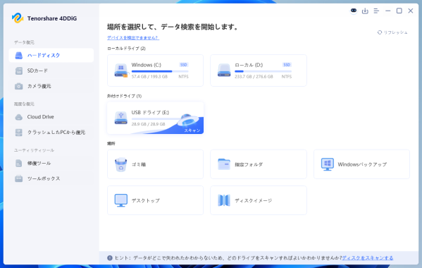 Tenorshare 4DDiGはデータ復旧の専門家です。WindowsとMacに対応しており、様々な状況で失われたデータを復元することができます。AI技術を使用して、失われた動画や破損した動画を復元可能です。