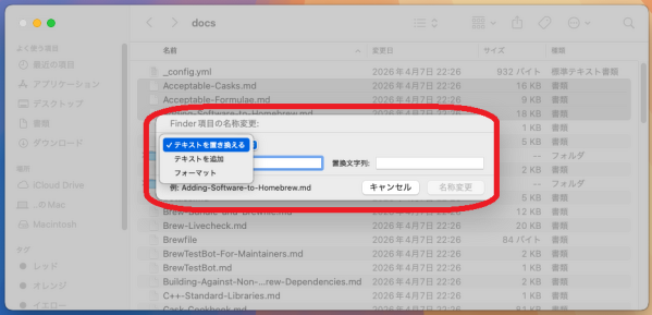 Finderで一括変更する