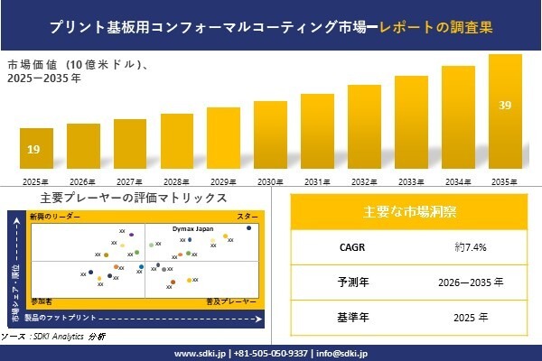 プリント基板用コンフォーマルコーティングに関する詳細な市場調査報告書は以下のリンクから入手できます: https://www.sdki.jp/reports/conformal-coating-for-pcbs-market/590642205