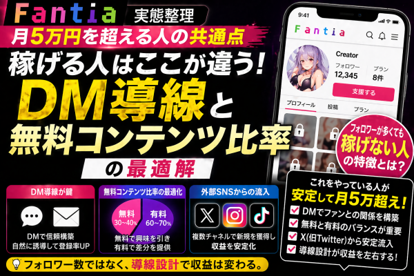 Fantiaで月5万円を超えるために必要なのは、フォロワー数ではなく、DM導線と無料コンテンツ設計です。単に投稿を続けるだけではなく、「どのように接点を作り、どのタイミングで誘導するか」という設計が収益を分けるポイントとなります。