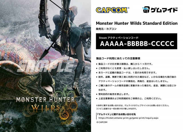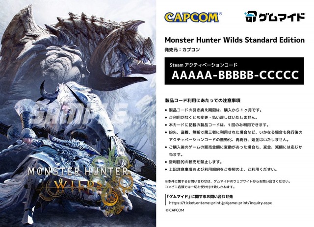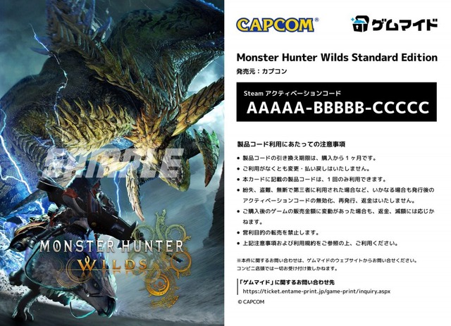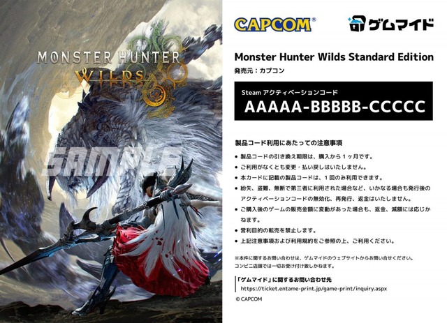 株式会社イード(本社:東京都中野区、代表取締役:宮川 洋)は、ブロマイド付きPCゲームのSteamキーコード販売サービス「ゲムマイド」にて、カプコンの『モンスターハンターワイルズ』を6月3日(火)より販売開始いたします。