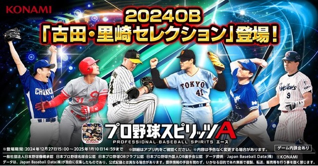 株式会社コナミデジタルエンタテインメントは、モバイルゲーム『プロ野球スピリッツA』(以下、プロスピA)において、 12月27日(金)から2024OB「古田・里崎セレクション」が登場することをお知らせします。