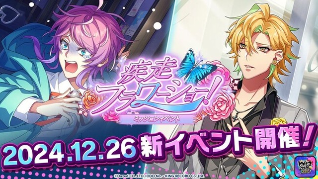 株式会社オッドナンバー(代表取締役社長:丸茂 雄大)は、株式会社Dazed(代表取締役社長:宮本 純乃介)、キングレコード株式会社(代表取締役社長:村上 潔)との共同開発による新作ゲームアプリ『ヒプノシスマイク-Dream Rap Battle-』(以下、『ヒプドリ』)にて、2024年12月26日(木)より、期間限定イベント「疾走フラワーショー!」を開催いたします。