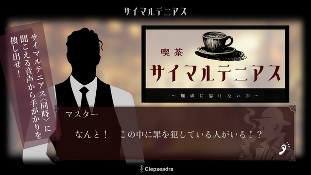 クレプシードラ株式会社(本社:東京都大田区、代表取締役:今誉)は、独自の空間音響技術Re:Sense(TM)を活用したショート推理ゲーム『喫茶サイマルテニアス~珈琲に溶けない罪~』を公開しました。本作は、実際の喫茶店にいるような臨場感のなかで複数の会話を聞き分けて推理を行う、「シチュエーションイマーシブ型音声作品」です。
