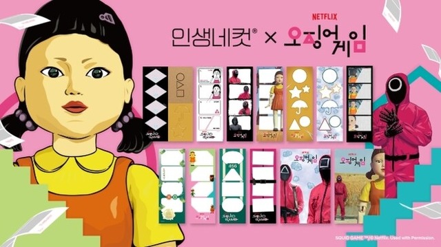今回の協業を通じて人生4カットは「イカゲーム」のアイコニックな要素と世界観を写真で融合させ、スクリーン越しにも豊かに楽しめる13種のフレームを全世界同時発売する。 また、国内では人生4コマアプリと連携したルーレットイベントとソウルと釜山に<イカゲーム>コンセプトのポップアップストアを披露する。 海外では写真関連の「イカゲーム」コラボレーショングッズ商品を発売し、世界中の「イカゲーム」ファンにユニークな楽しみを提供する。