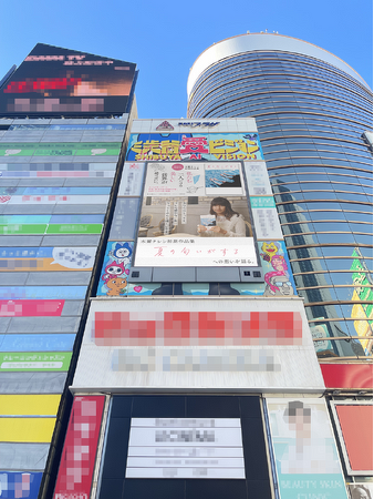 (渋谷宮益坂下交差点にある、渋谷東映プラザ壁面の街頭ビジョンです。)